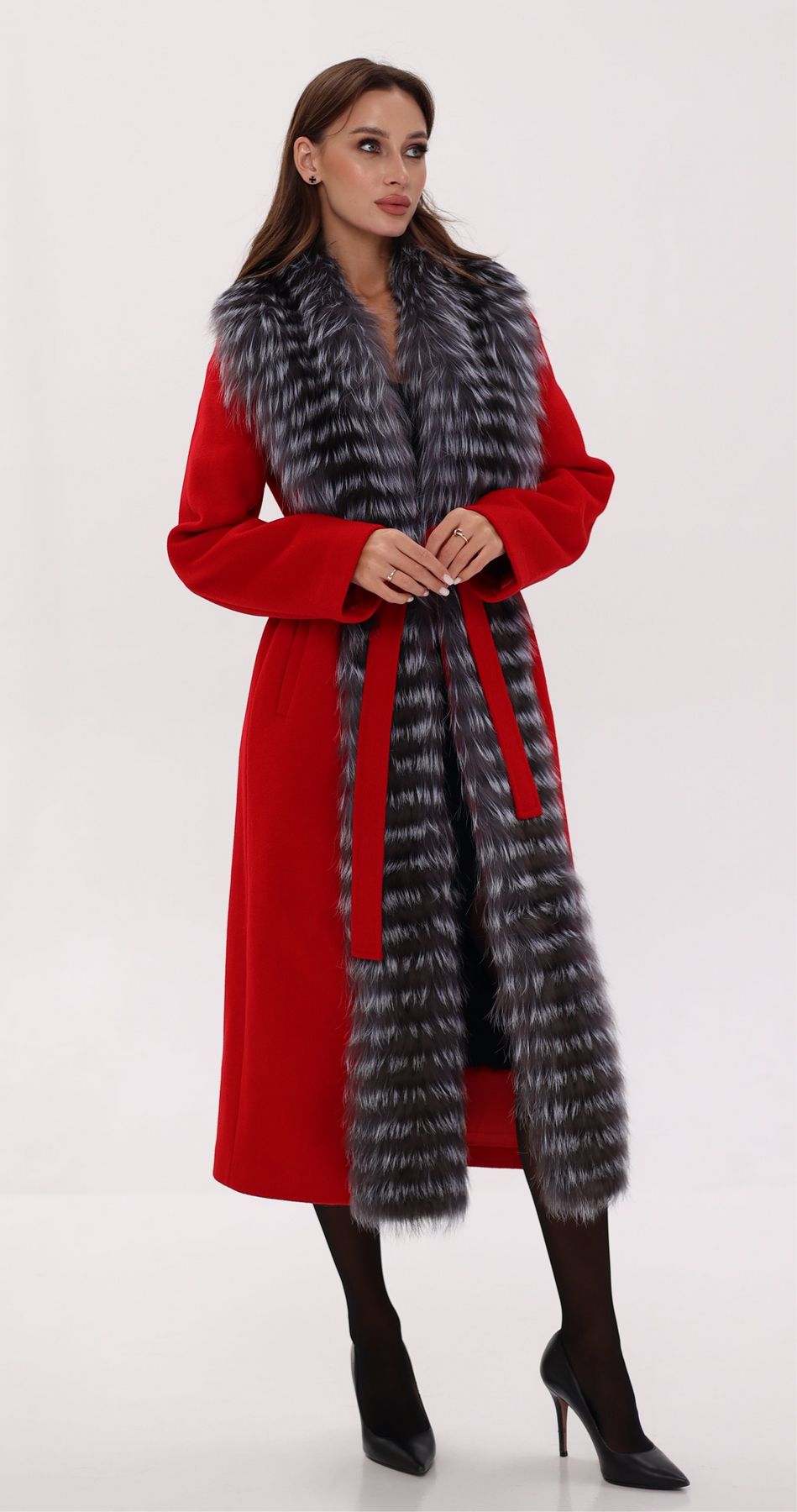 Embrace timeless luxury and sophisticated warmth with our 100% Virgin Wool Coat, elegantly adorned with genuine Silver fox trim. This premium coat is meticulously crafted from the finest wool, offering unparalleled softness and insulation. The luxurious Silver fox fur trim around the collar and front panels adds a touch of elegance and refinement, making this piece a perfect statement for any occasion.