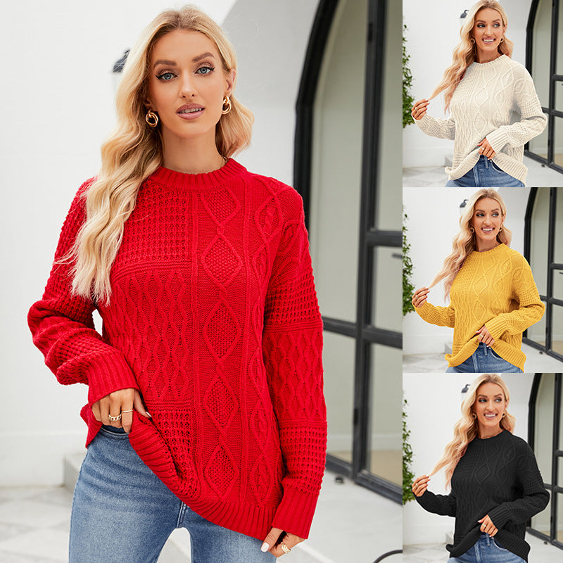Product information: Pattern: solid color Color: red, white, yellow, black Style type: casual Popular elements: 3D/stereo pattern Style: pullover Thickness: medium Fabric name: acrylic nylon Sleeve type: Regular Main fabric composition: acrylic fiber Wearing style: pullover Sleeve length: long sleeve Style: casual style Craft: collage/stitching