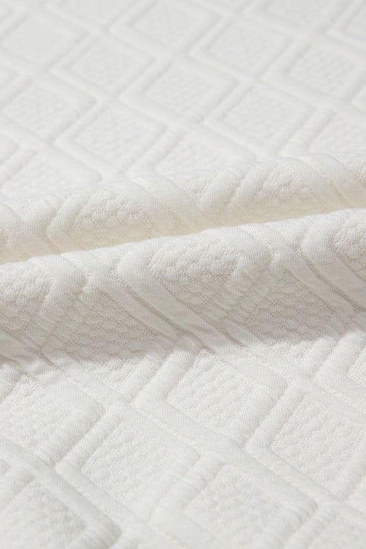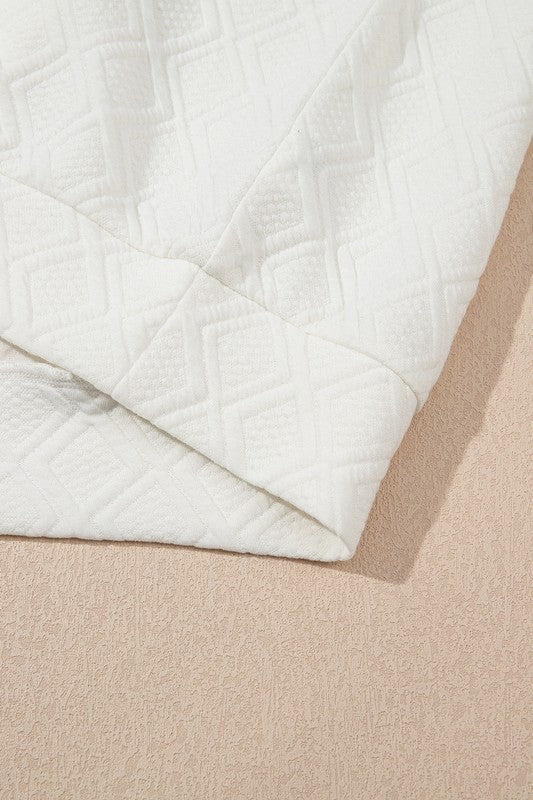 With a textured fabric that exudes quality, this blouse offers a luxurious feel while maintaining a relaxed, comfortable fit.