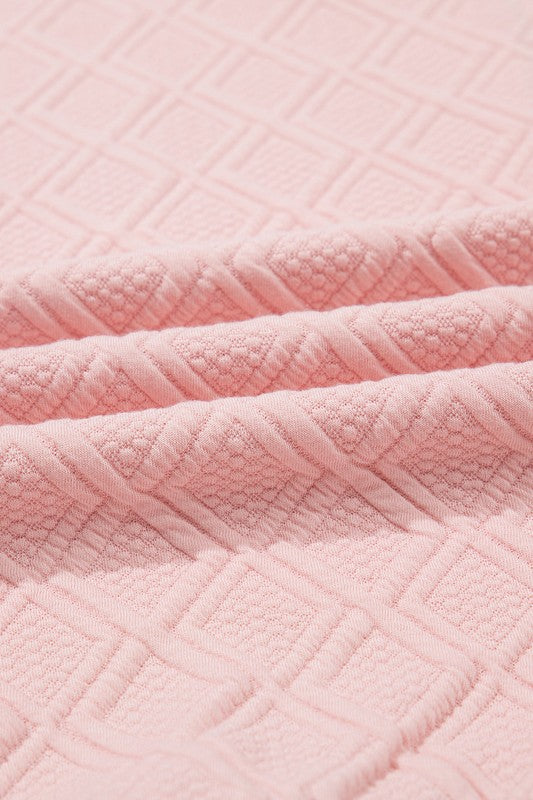 Effortlessly chic, this textured blouse features a unique pop of color at the neckline, adding a playful touch to your outfit.