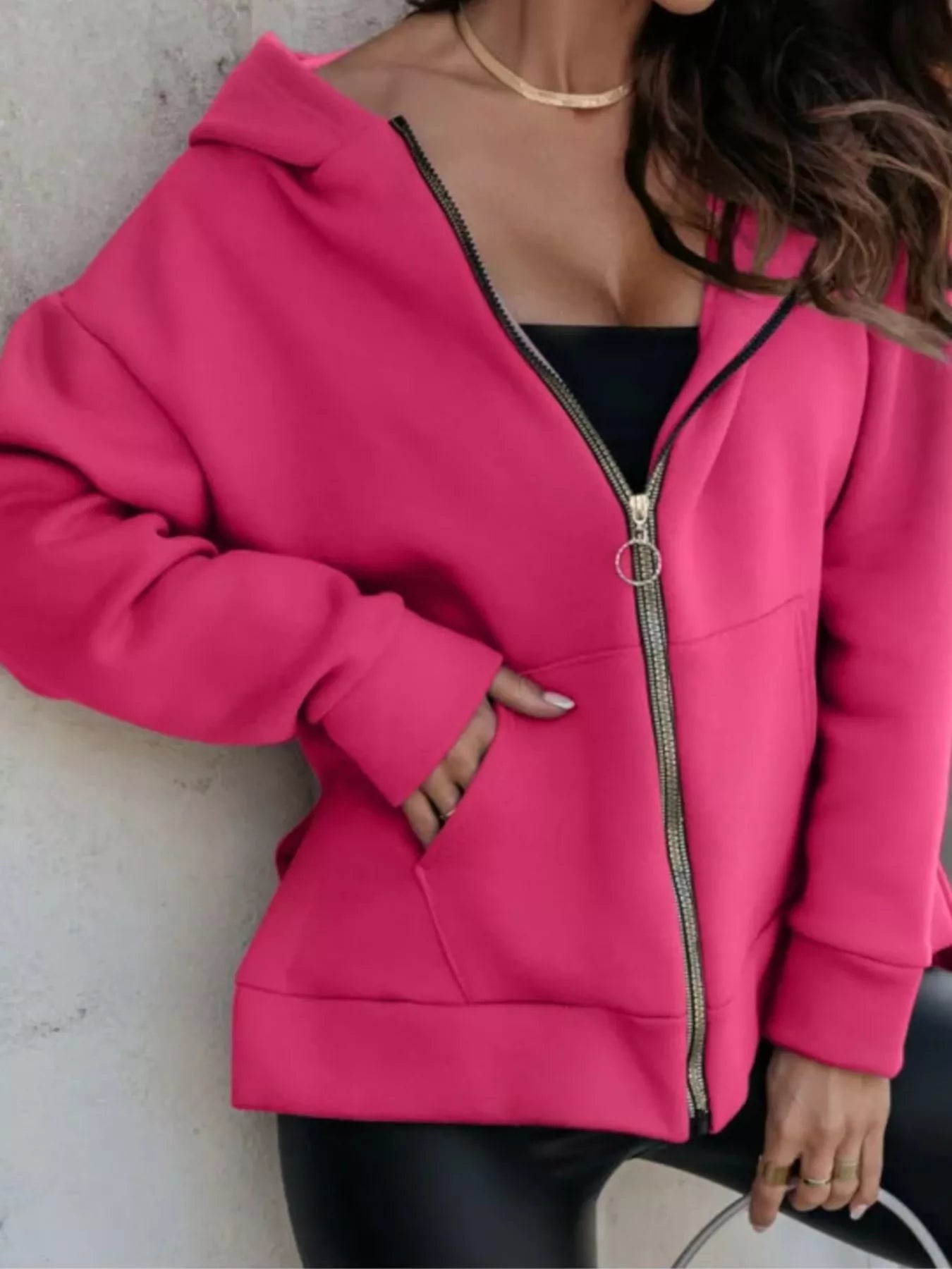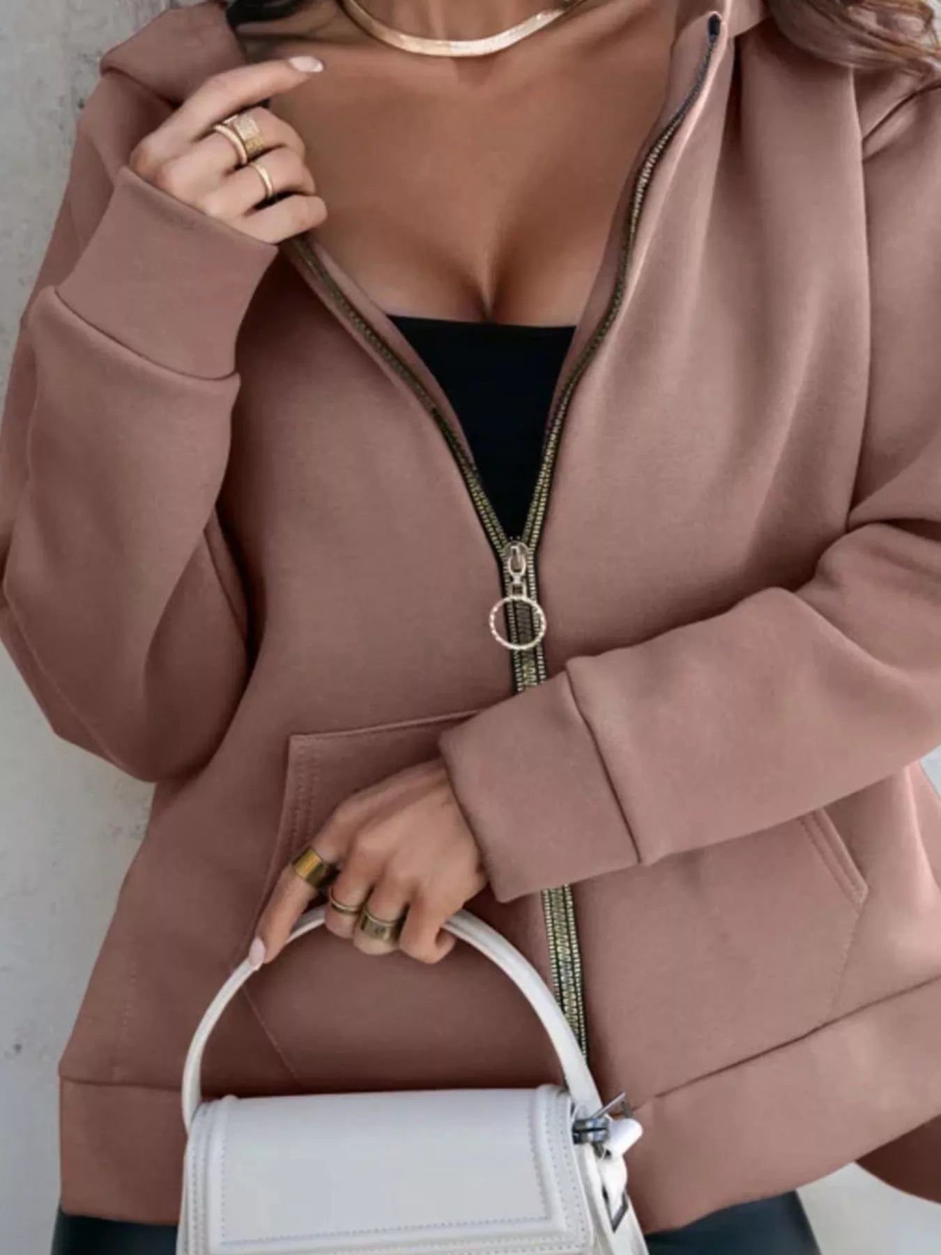 Side Slit Zip Up Hoodie