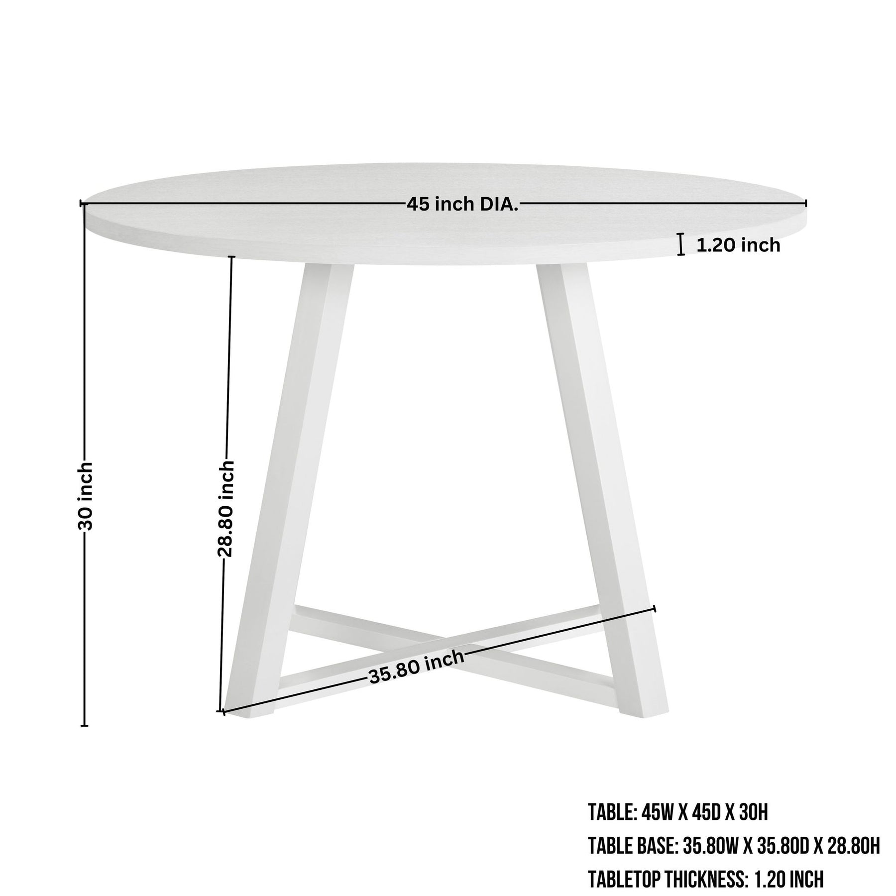 ➤ [TRESTLE BASE TABLE]: This round table combines stunning design with sturdy construction. The melamine tabletop features a replica exotic wood grain in a vibrant color that blends beautifully with the trestle base. Expertly crafted with a rubberwood base and MDF tabletop. The minimalist design will create a focal point in your dining area.
