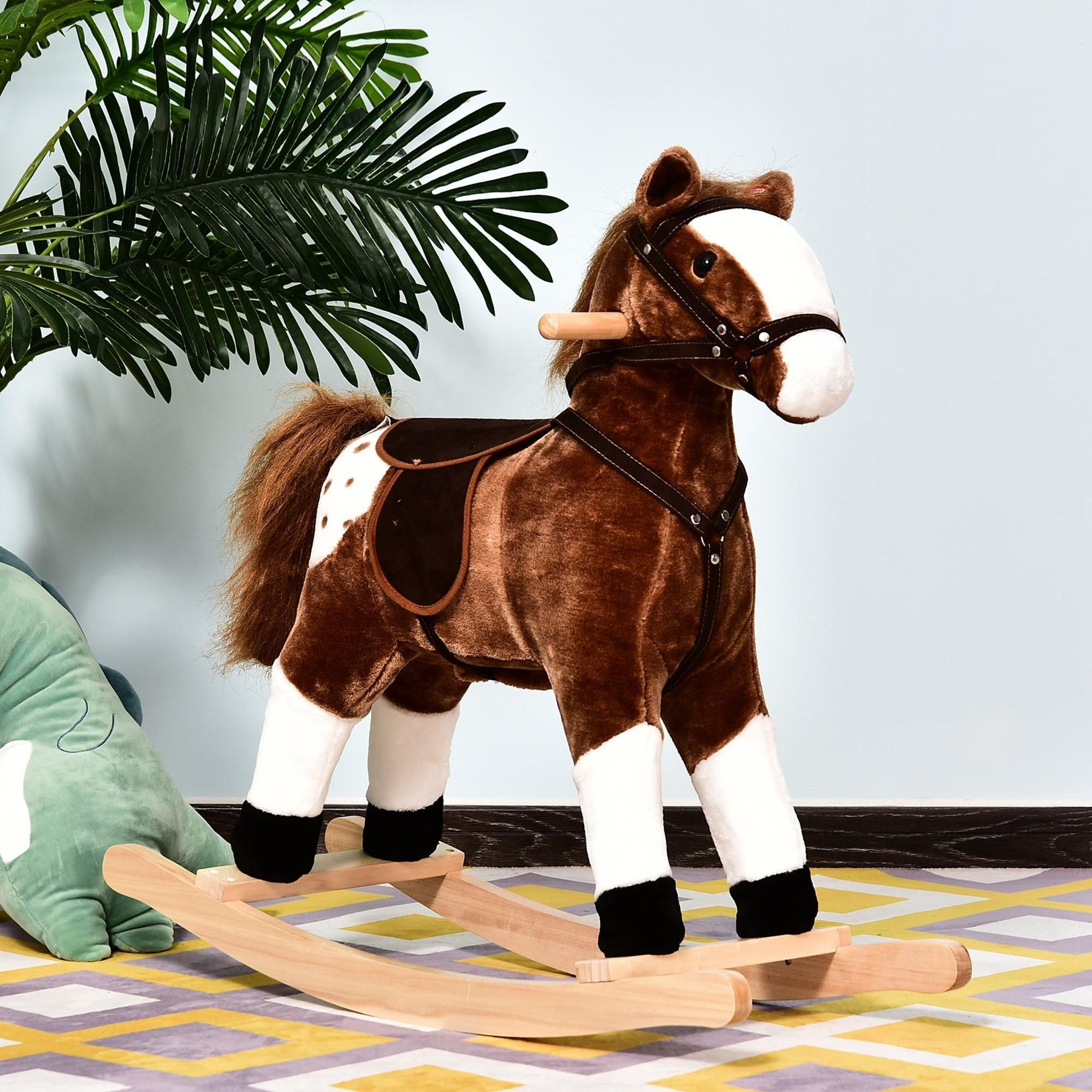 - CLASSIC TOY WITH AUTHENTIC SOUNDS: Our rocking horse combines a traditional plush design with updated features such as electronic neighing and galloping sounds when the ears are pressed..
