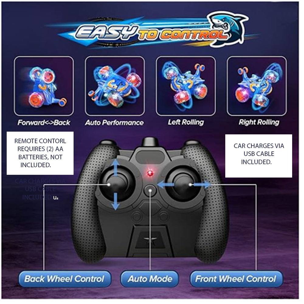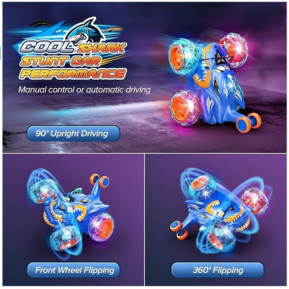 Remote Control Stunt Car Shark RC Kids Toy Outdoor 360° Rotating Boys and Girls - Blue