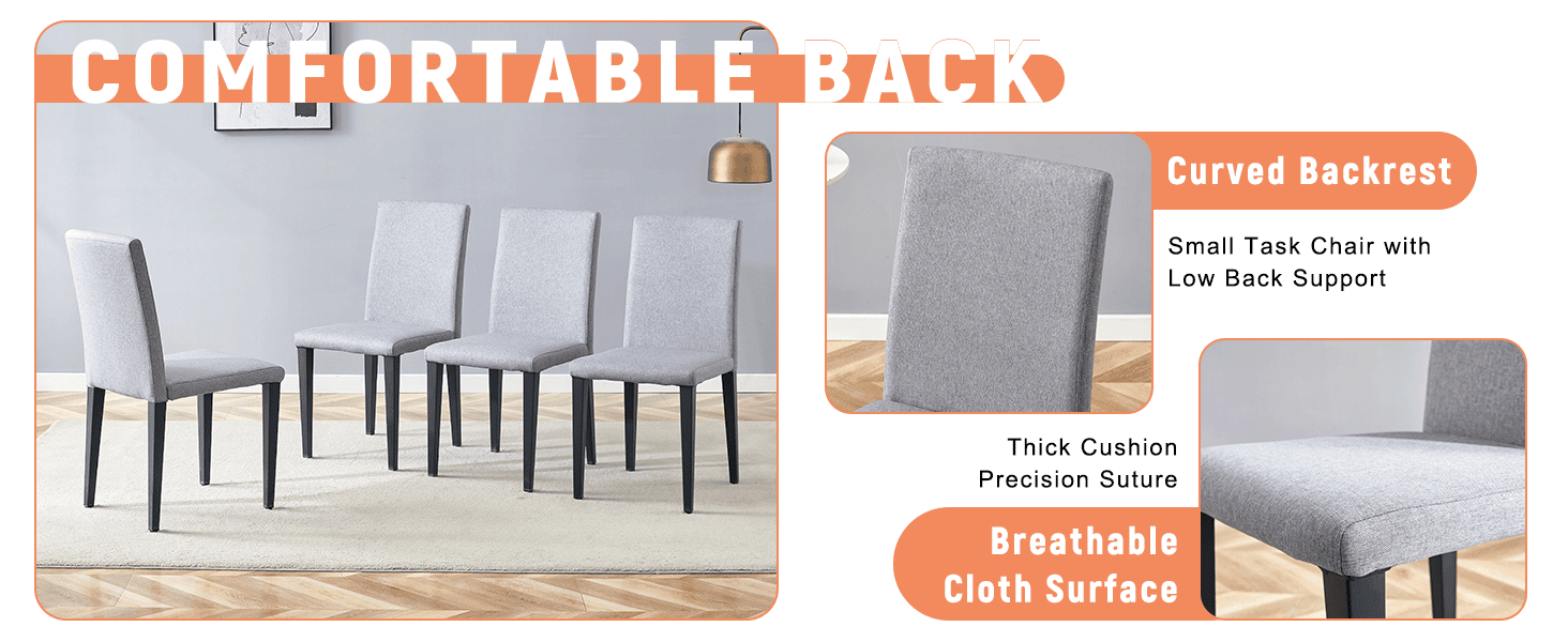 Linen-Cotton Material: The chairs are made of light gray linen-cotton, naturally breathable, offering excellent comfort.Easy to Clean: The linen-cotton material is easy to clean and maintain, keeping the chairs fresh and new.