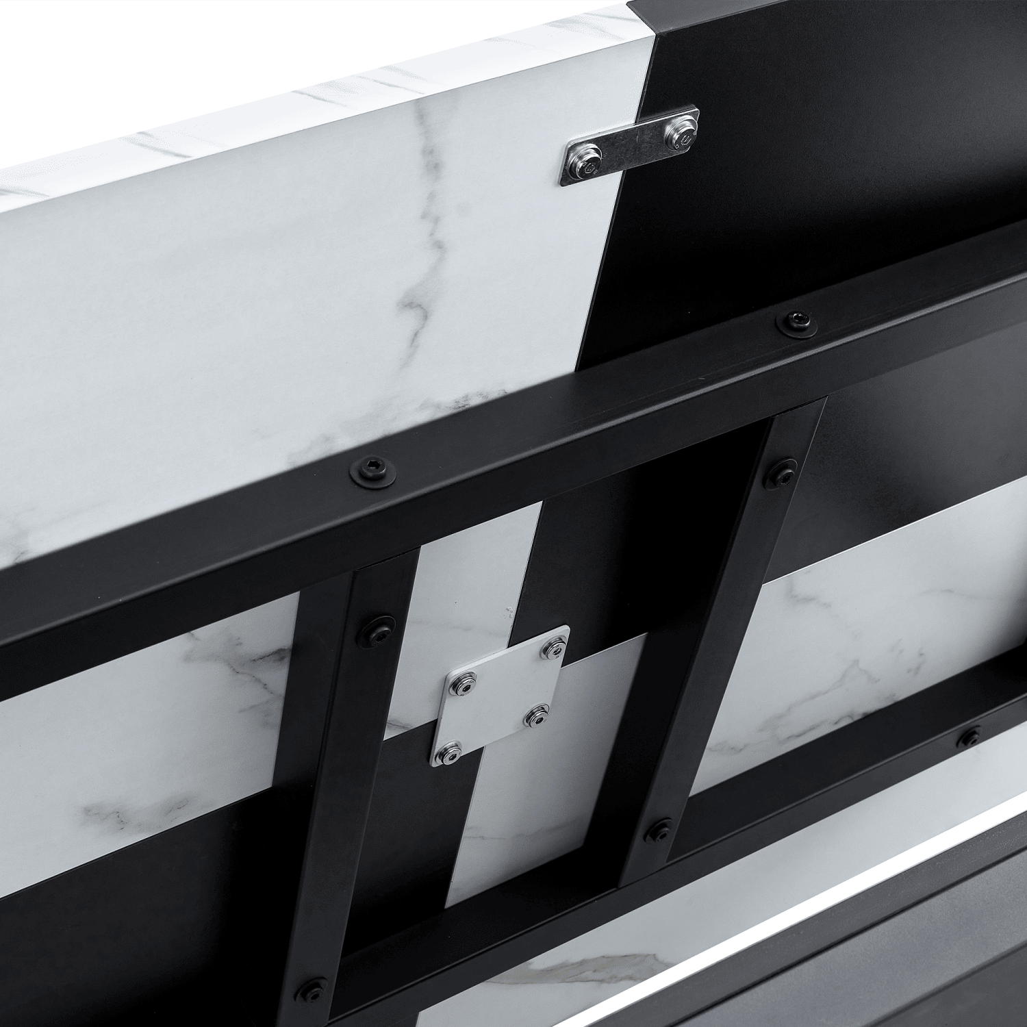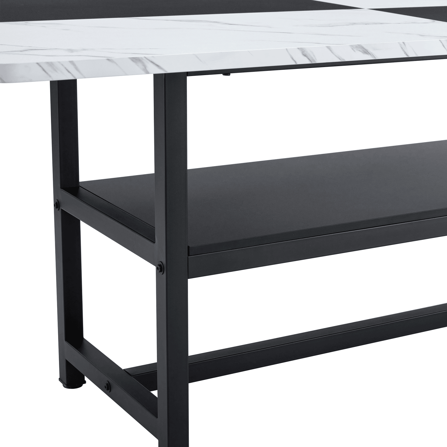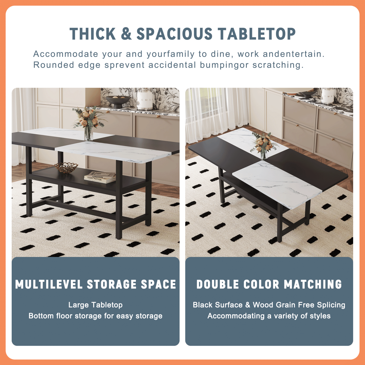 Unique desktop: The desktop is made of MDF material, cleverly spliced with white and black to create a vivid visual contrast. The 1-inch thick tabletop not only has a rich texture, but also effectively resists scratches and wear during daily use, and is easy to clean.