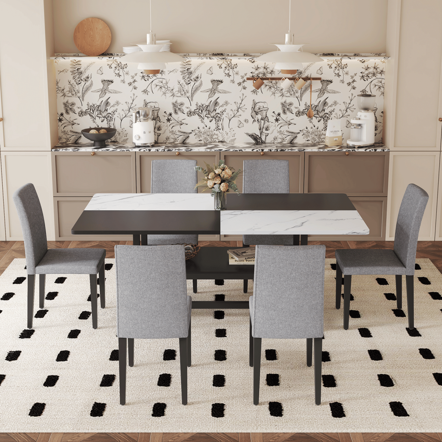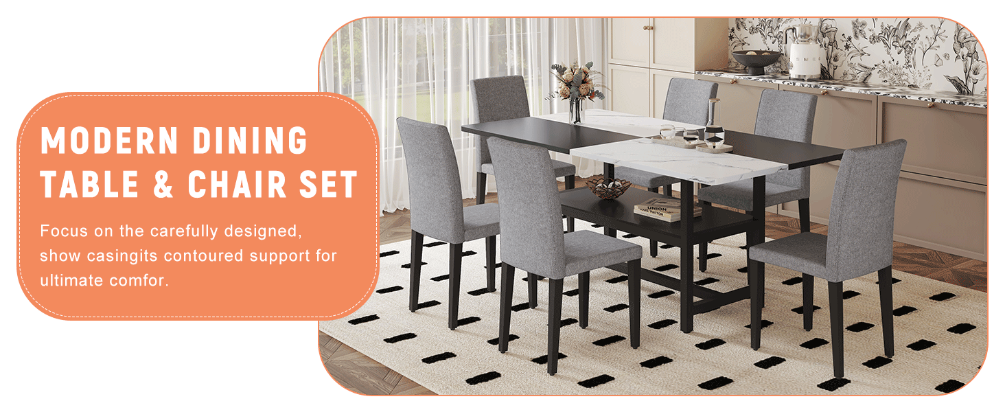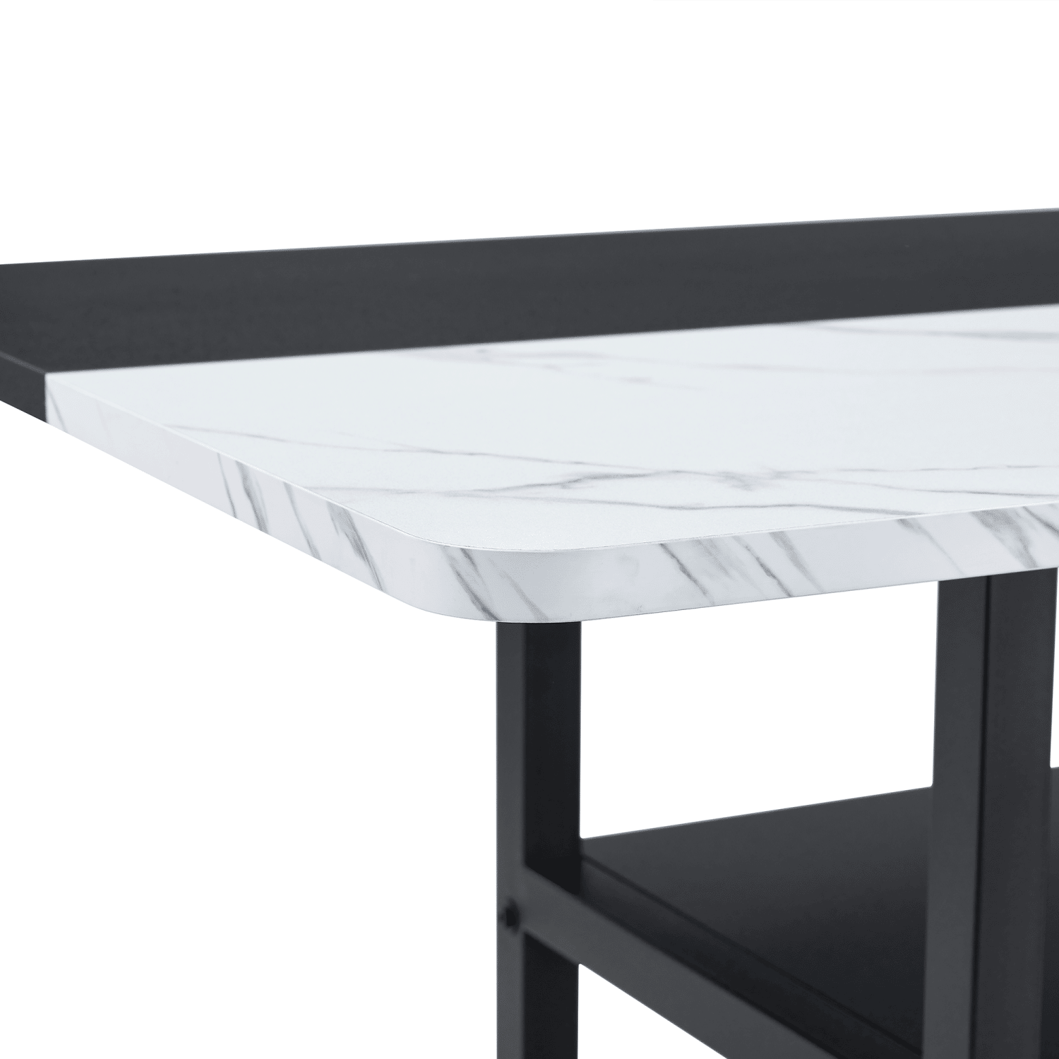 Unique desktop: The desktop is made of MDF material, cleverly spliced with white and black to create a vivid visual contrast. The 1-inch thick tabletop not only has a rich texture, but also effectively resists scratches and wear during daily use, and is easy to clean.