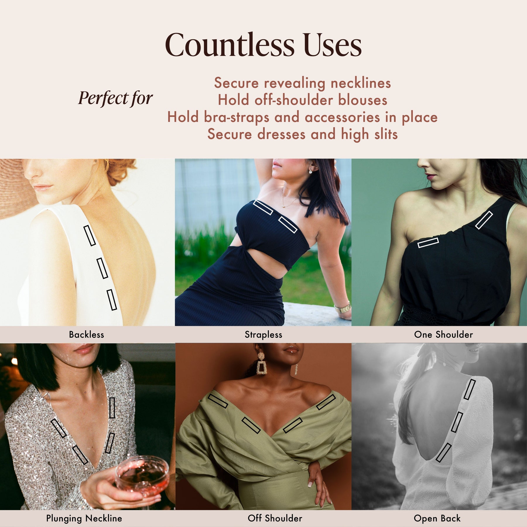 Versatility Unmatched: Perfect for every piece of clothing, from off-shoulder tops and wrap dresses to blouses that tend to gape. Our 1.5" x 3" strips have got you covered.