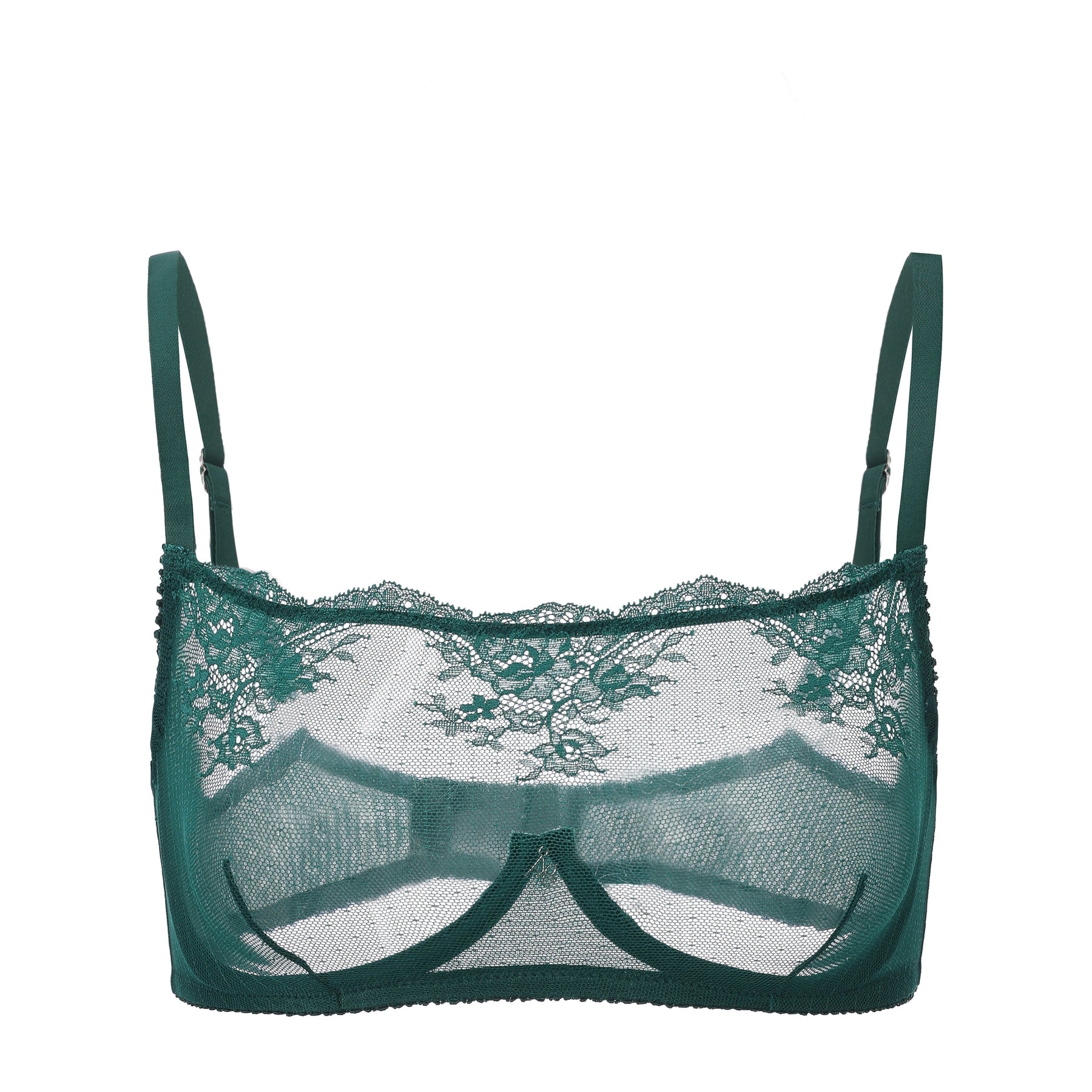 Kim High Neck Sheer Lace Underwire Bra - Emerald / 30F - Bra