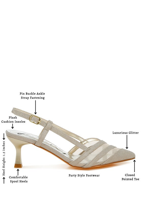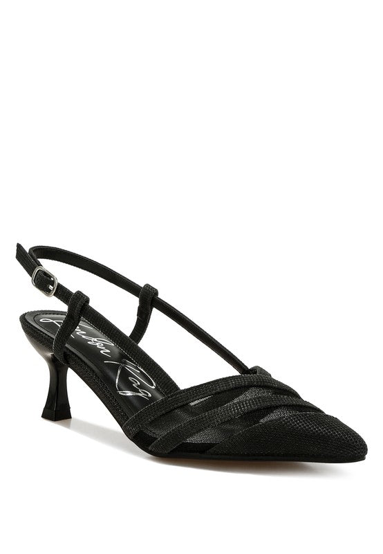 The slingback sandals are ravishing with the multiple straps vamp and the pin buckle slingback fastening. The stylish sandals are comfortable with kitten heels and comfortable cushion insole. The sandals are also quite versatile and can be styled many ways.