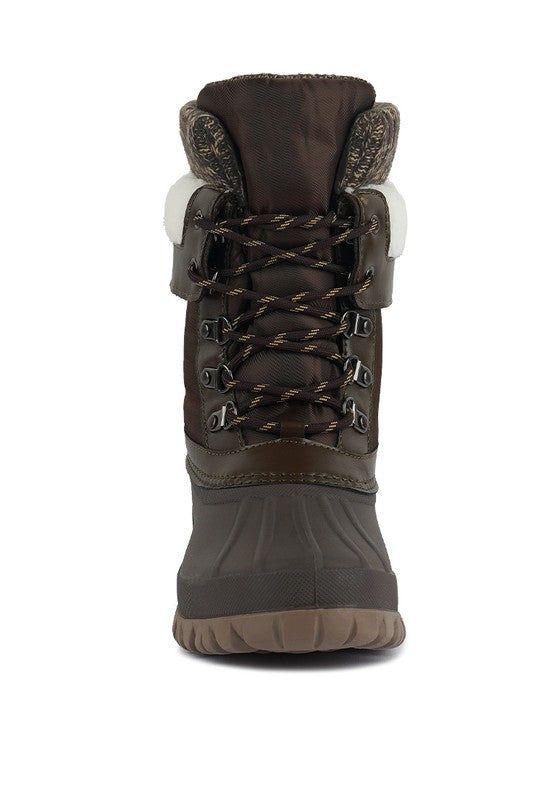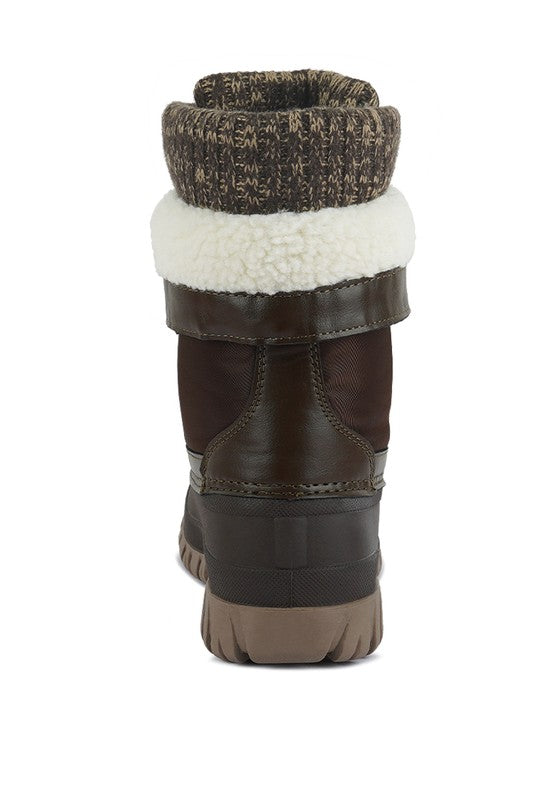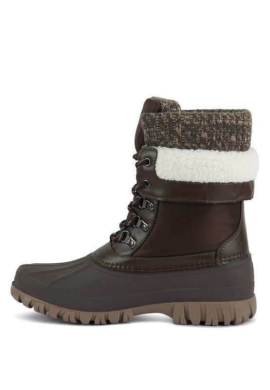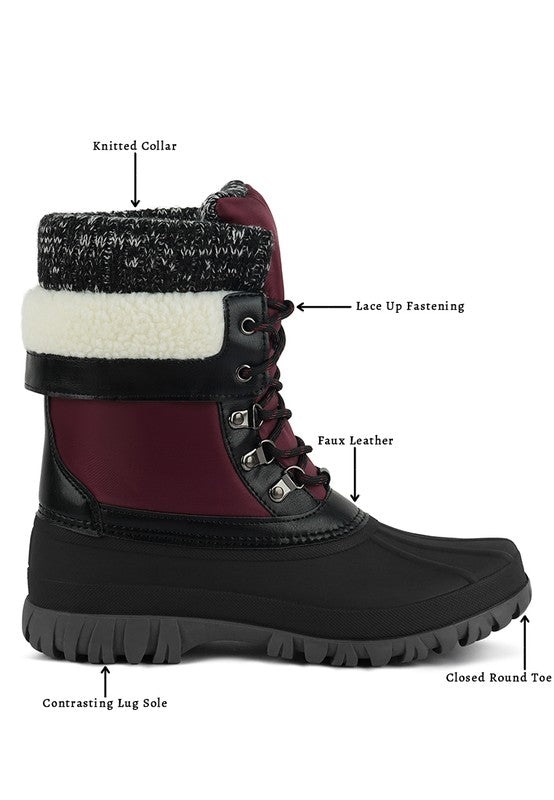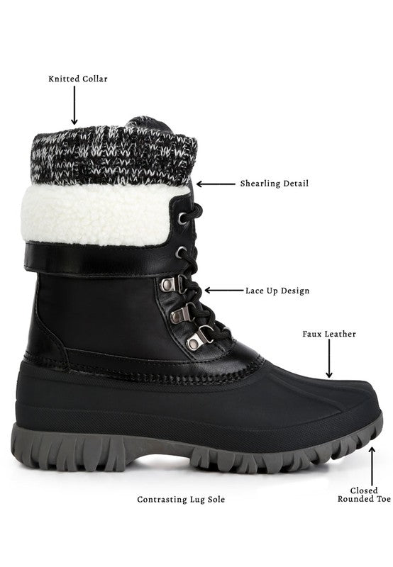 Outer Material- Faux Leather Outer Sole - TPR Closed Rounded Toe Lace Up Closure Knitted Collar Shearling Lining Detail Lug Sole Lightly Cushioned Insoles SH4379