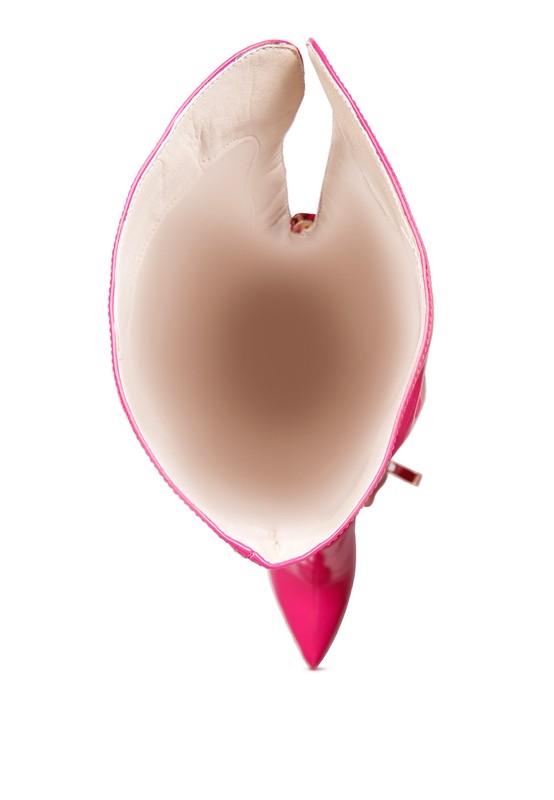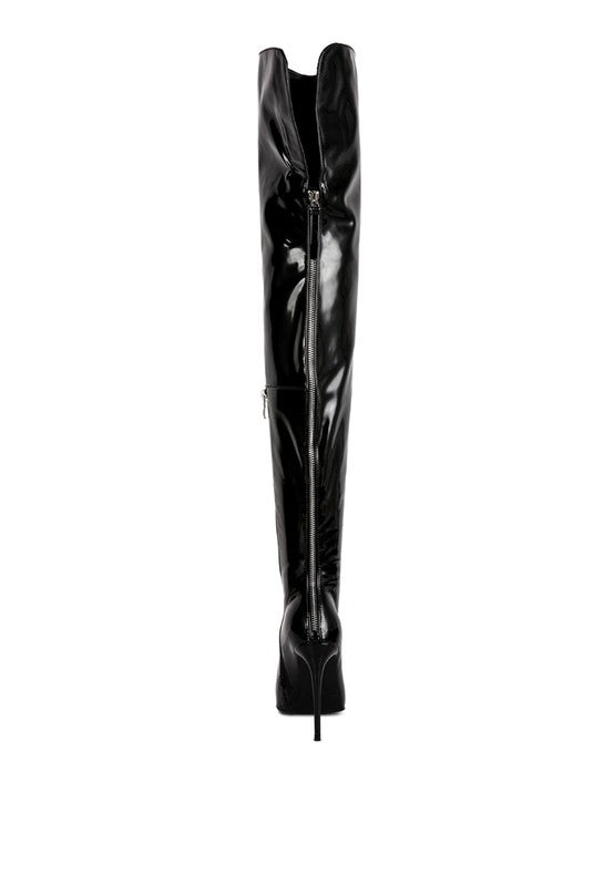 Stiletto high heel boots are the perfect footwear for a night out on the town. They look lovely on your legs and are attractive and fashionable. The twin zipper facility provides excellent stability and support. Look sharp, petite, and dazzling in this pair of stretch Patent PU long boots which is worth every dollar spent.