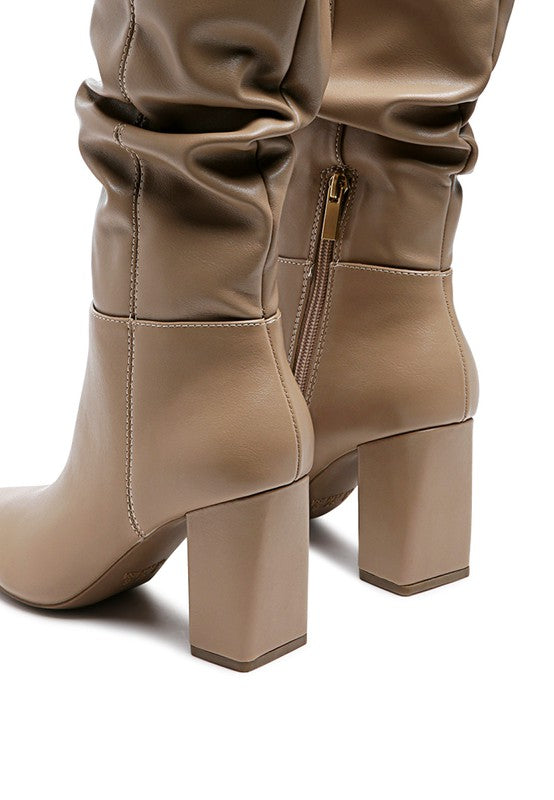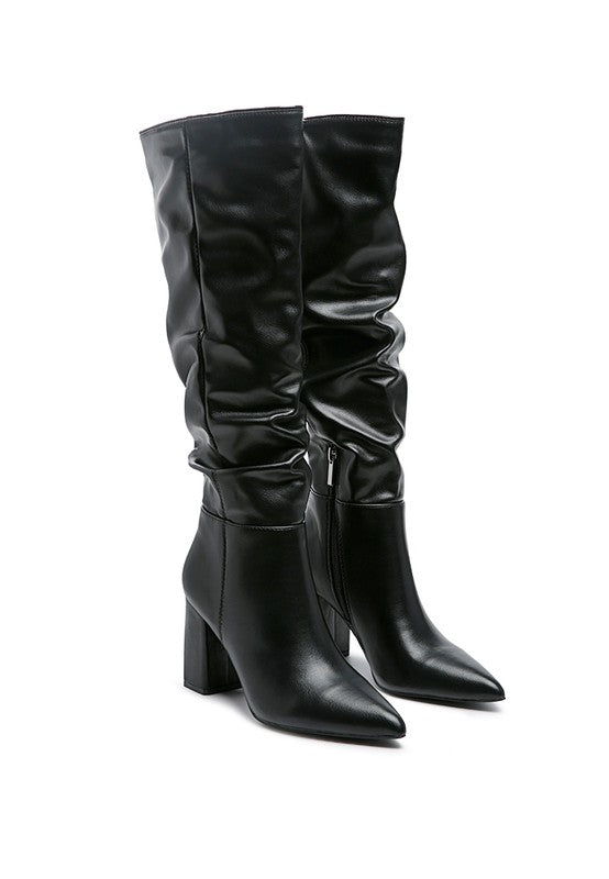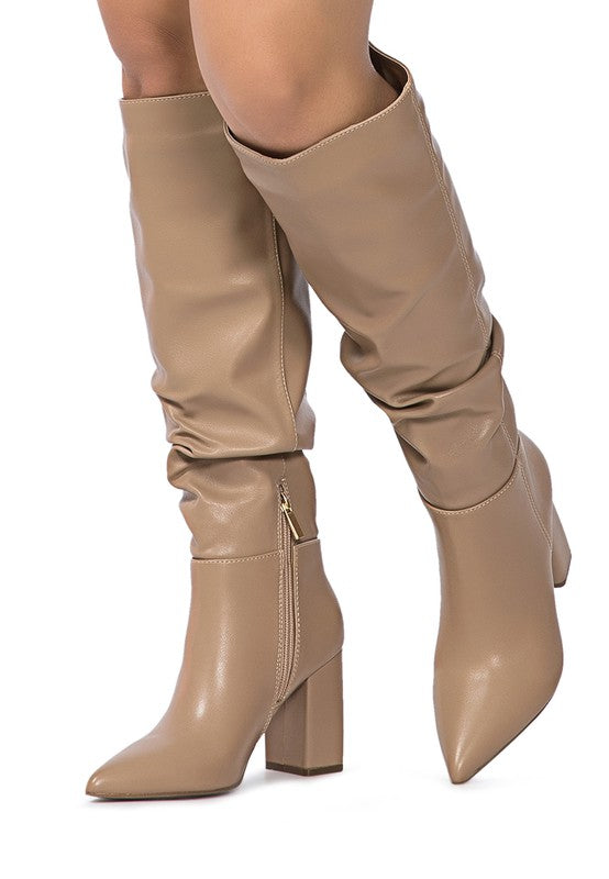Ultra stylish the all shiny solid knee high boot with side zipper opening. The block heel boot will jazz up any outfit!Upper Material: PolyurethaneLining Material: SyntheticOuter sole: TPRSide Zipper OpeningSolid tone slip-onBlock HeelPointed toeDurable TPR outsoleKnee High Boot Slouch Design