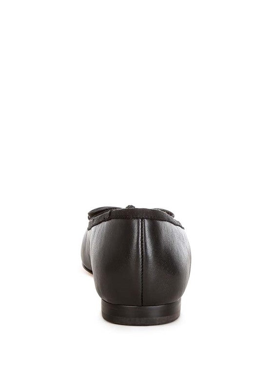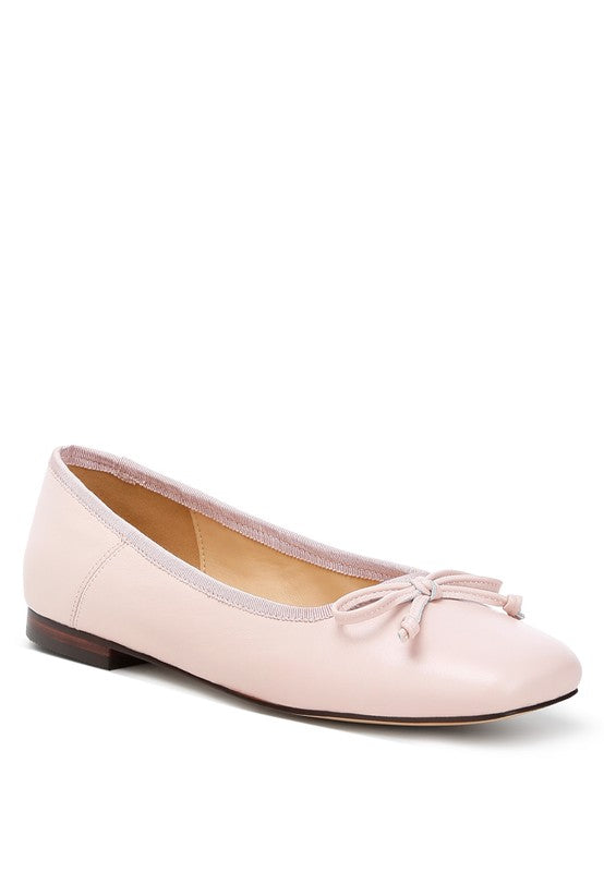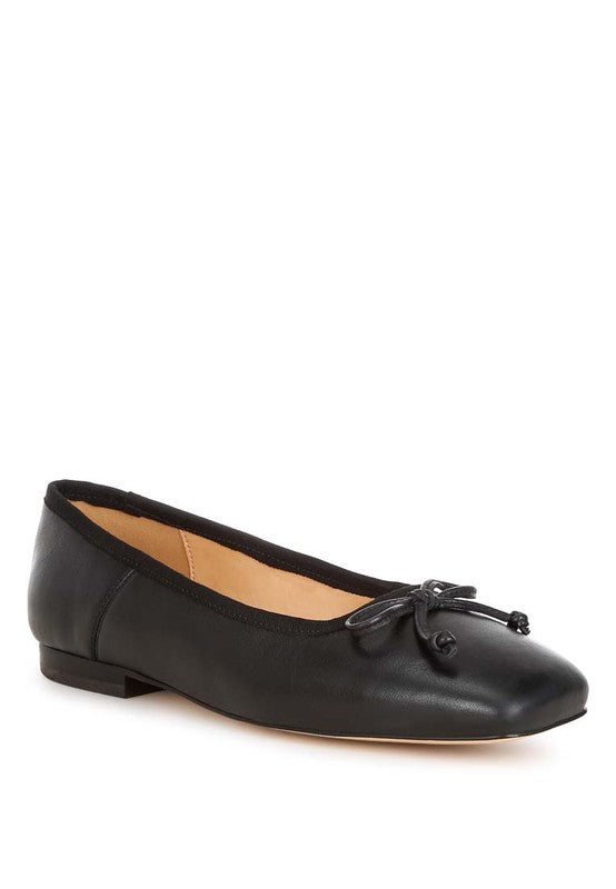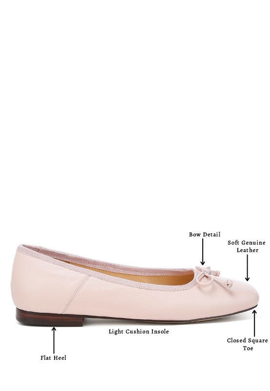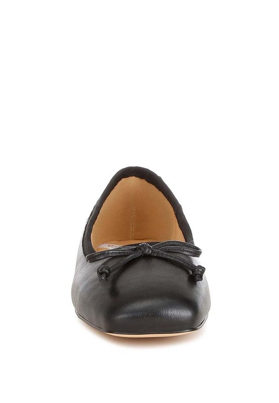 Made from soft genuine leather, these squared-toe ballerinas are all things cute and pretty! They come with a delicate bow on the vamp and can perfectly complement your summer dresses, boyfriend jeans and casual tops.Type : BallerinasUpper material: Genuine LeatherOuter sole: RubberHeel Height: 1 cm/0.39 inchesClosed Square ToeFlat HeelsBow Embellishment DetailLight Cushion InsoleRCSH4890
