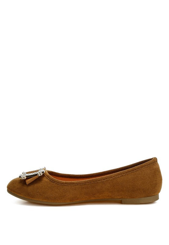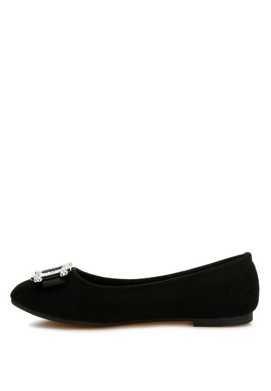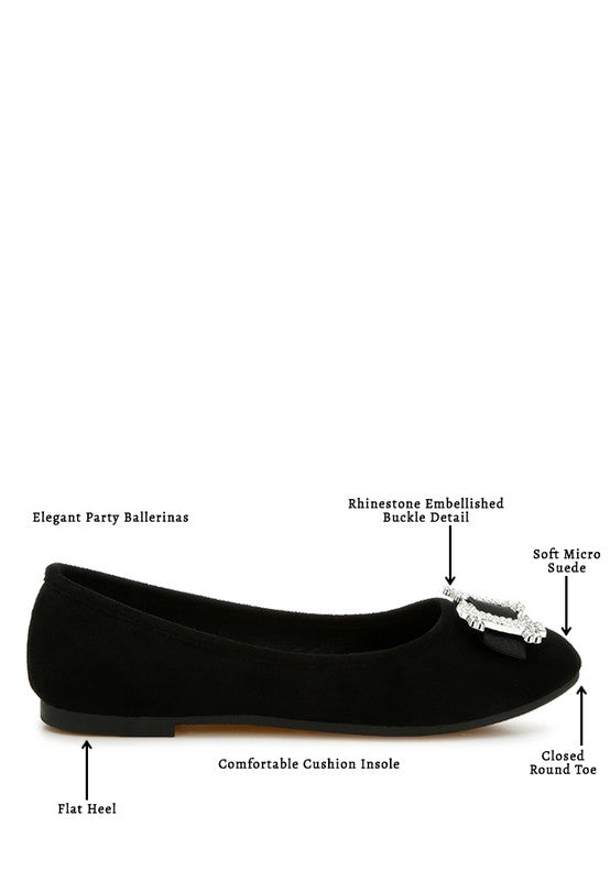 Where elegance meets sparkle for your special occasions-crafted with high-quality microfiber, these ballerinas are designed to make you shine on the dance floor. The rhinestone-embellished buckle detail makes them an even better pair of shoes for parties or casual hangouts.