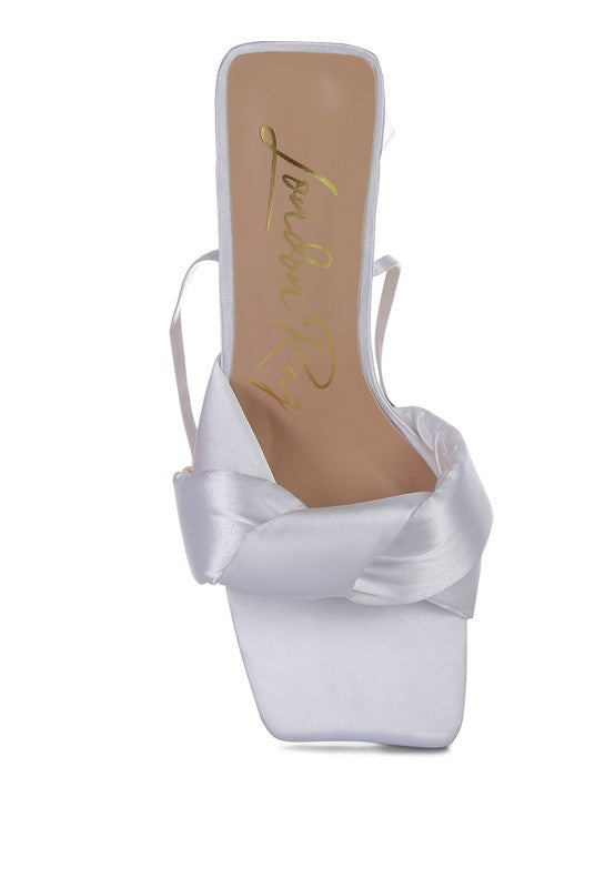 Outer material: Satin, PU Lining Material: Synthetic Outer sole: TPR Open Square Toe Triangular Block Heel Knotted Satin Strap Tie Up Casual Sandals Partywear Women's Sandal SH3167
