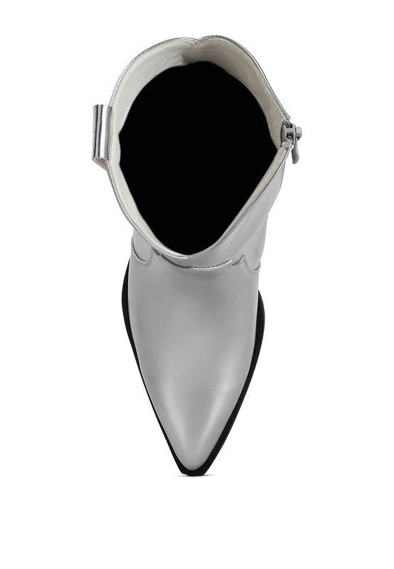 Are eye-catching metallic boots a fashion turn-on for you? With low-stacked block heels, eye-catching mock stitch detail, and light cushion insoles, these metallic boots are lustrously gleaming. They come with convenient pull tabs for easy slip-on and off for you to dance the night away.