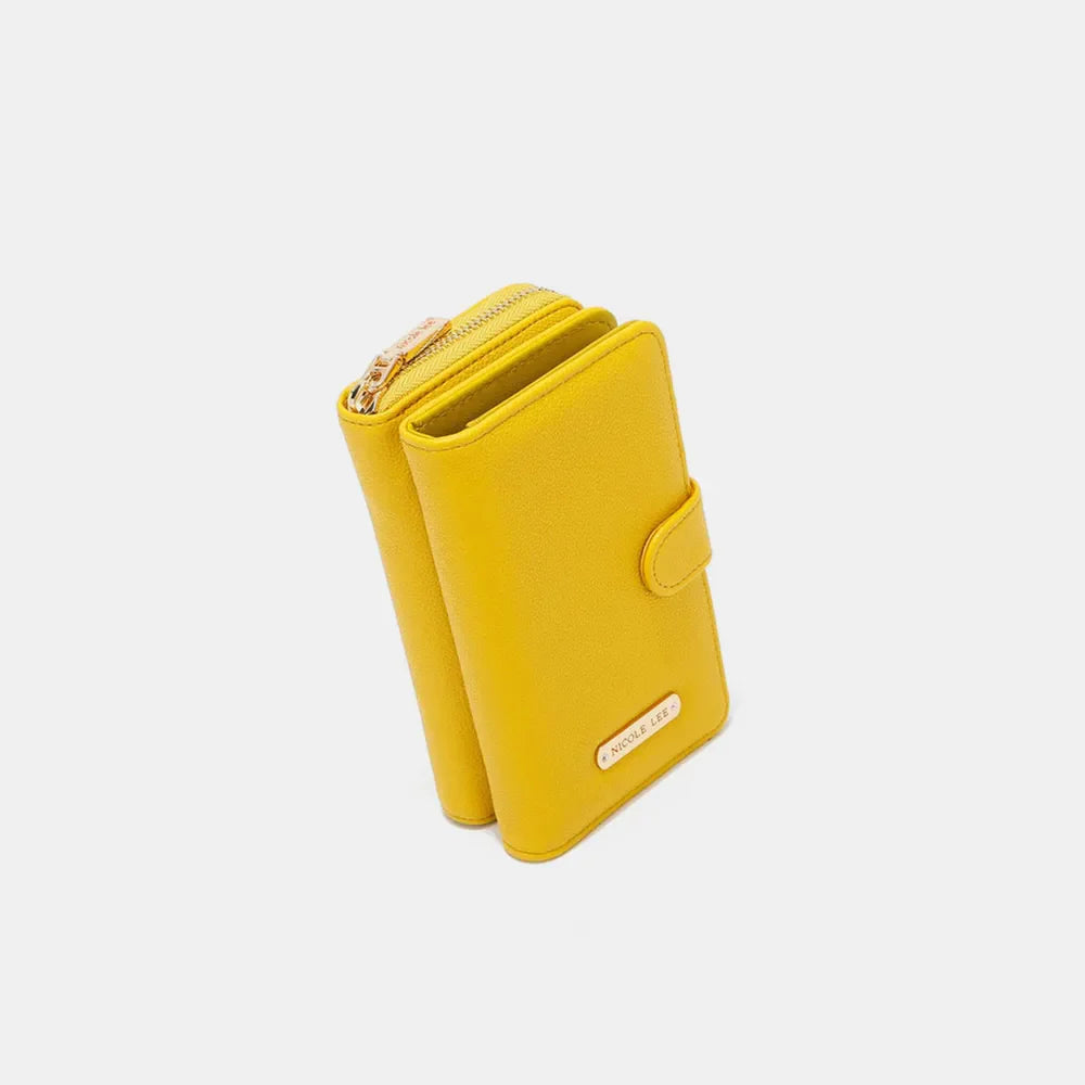 Zip wallet opens up to interior ID window, 8 card slots, side zip and note pockets
