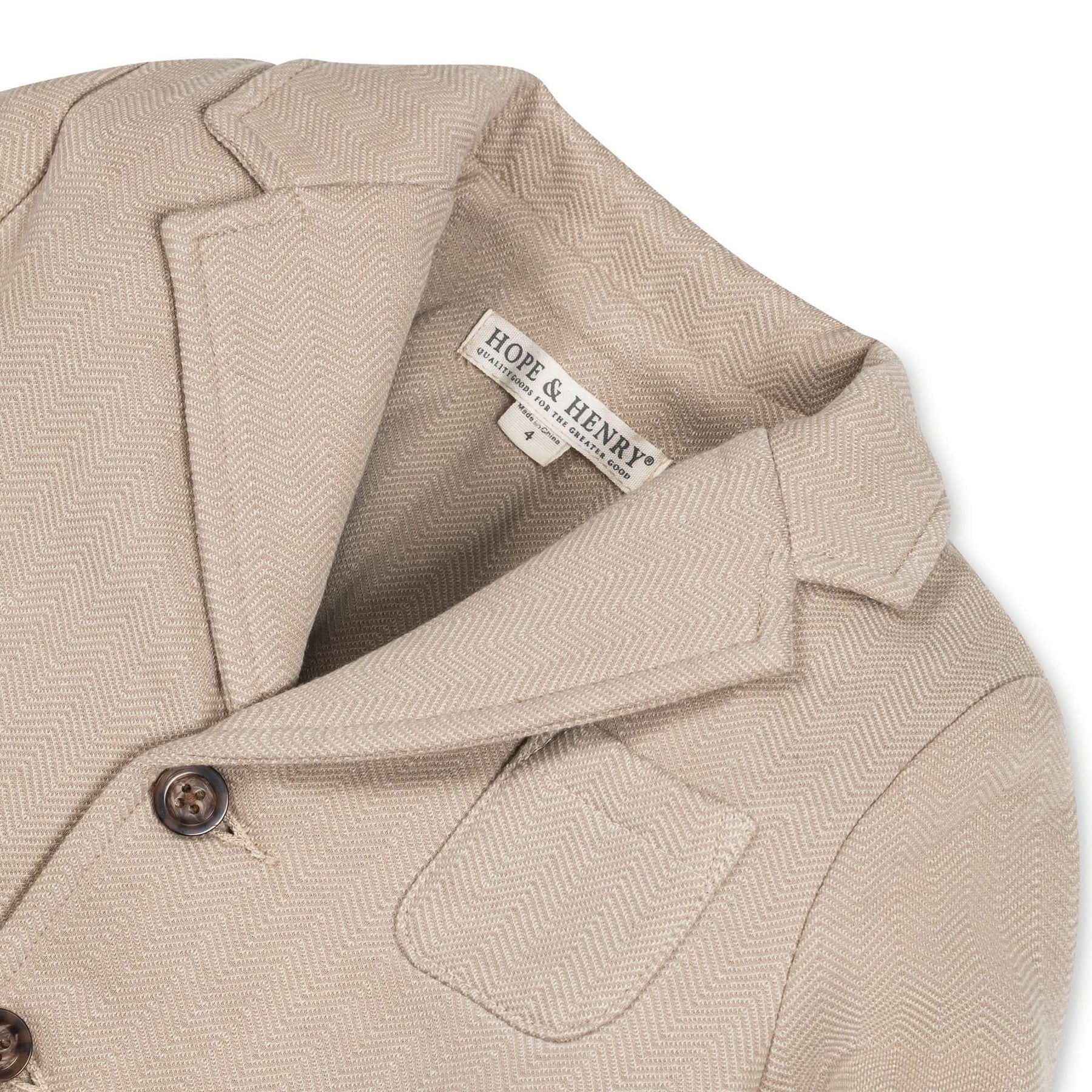 • Faux horn buttons. Notch collar, chest pocket, front patch pockets, faux suede elbow patches, and back vent.