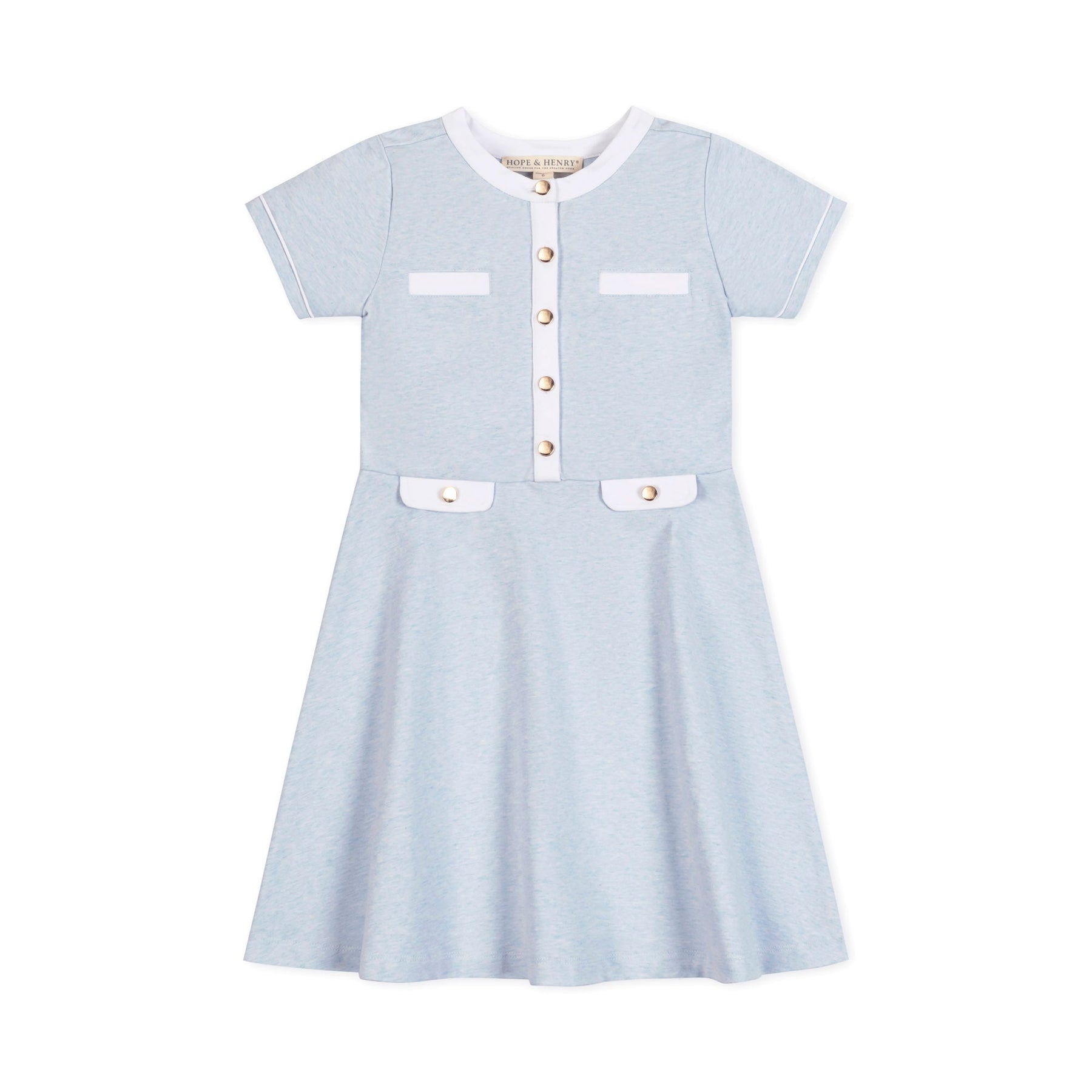 For a put together finish, our short sleeve dress in soft organic cotton french terry will be your girl's chic piece for spring. Features classic details like a gold button front placket, contrast trim, and decorative front pockets. So comfortable to wear and play in, but can also be dressed up with ease.
