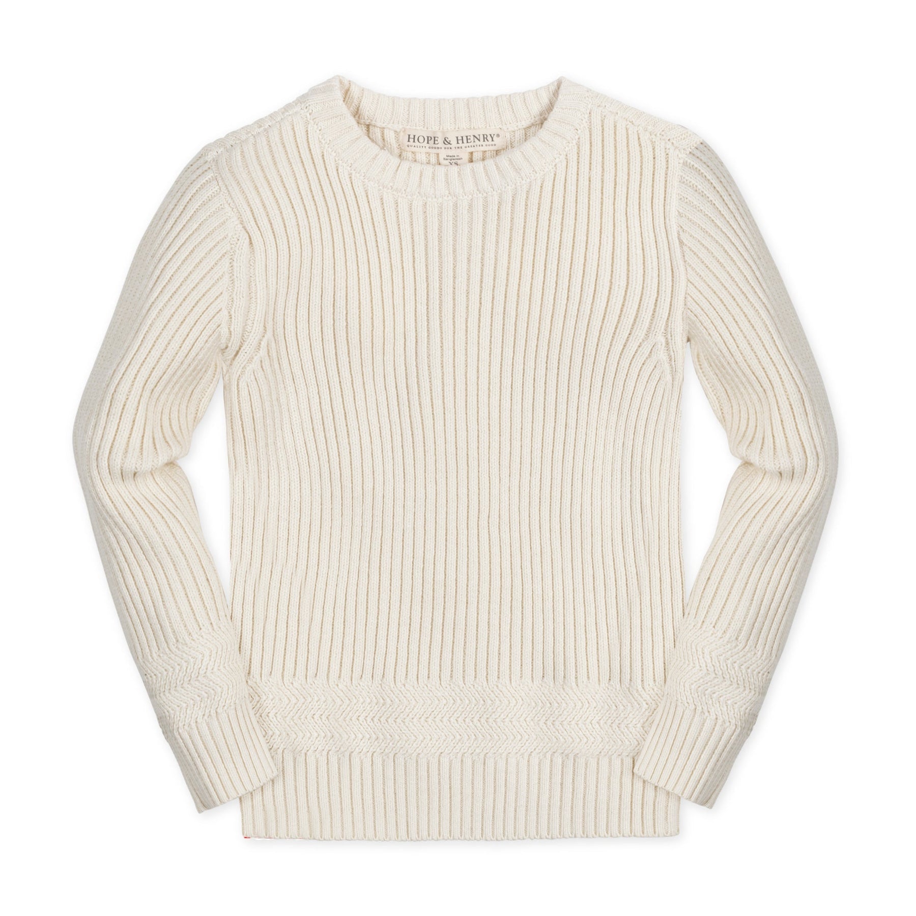 Our stylish crew neck pullover sweater is crafted in soft organic cotton and will keep your guy warm all season long. Features a beautiful herringbone detail at the bottom hem and cuffs paired with an allover rib knit. The easy pullover silhouette pairs perfectly with our collection of organic cotton button downs and pants!