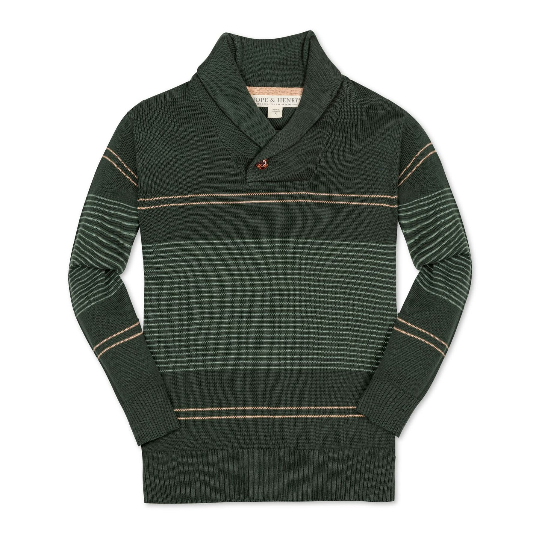 Our shawl collar sweater in soft organic cotton is the ultimate in comfort and style for your guy. Special attention to details such as the shawl collar with button closure and interesting stripe placement make this an instant classic that can be worn on repeat and handed down time and again.