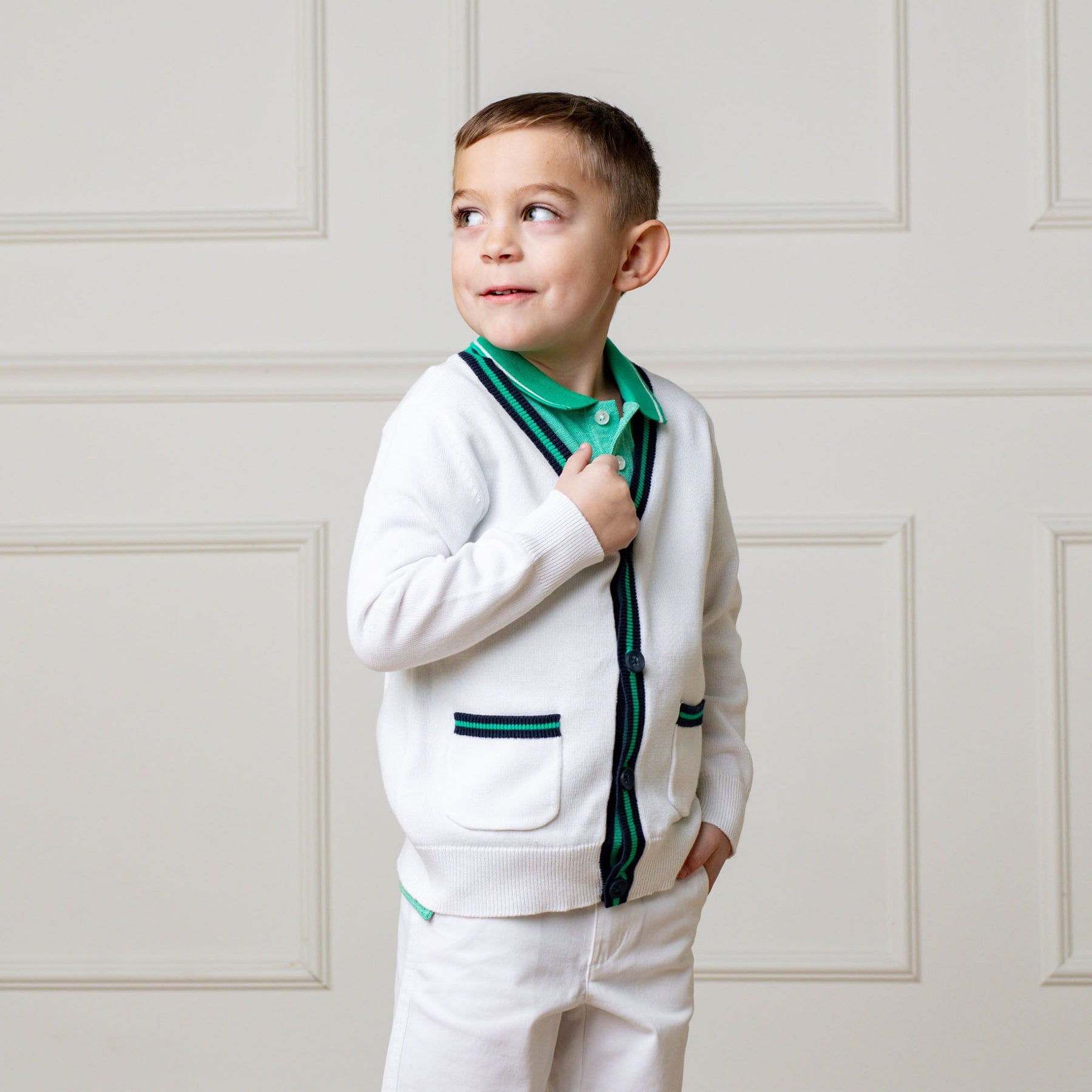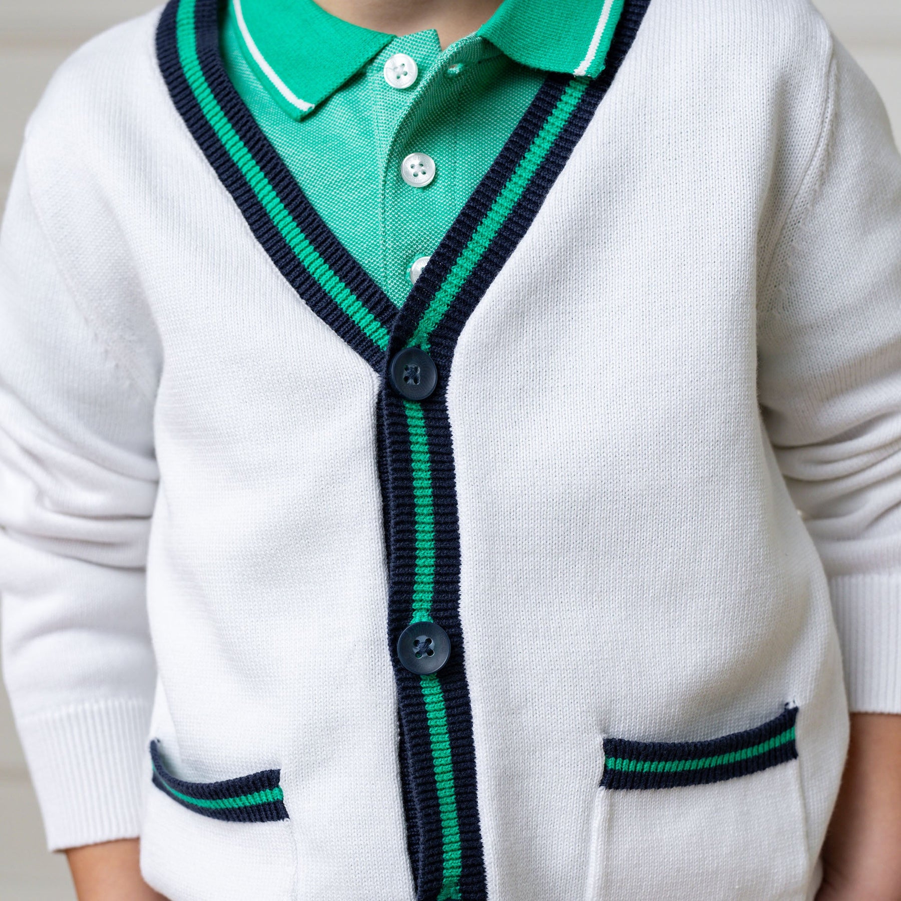 Our handsome fine gauge cardigan is a new version of a timeless classic. Knit in our signature soft organic cotton, it features a button front closure, contrast tipping along the rib trim, and two front pockets. Layers beautifully over our collection of organic cotton button down shirts for a look he'll love.